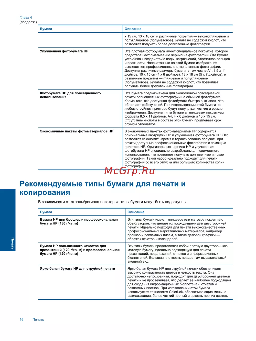 - Типы бумаги рекомендуемые для печати фотографий p.17