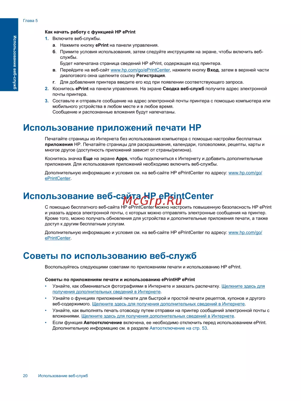 HP Deskjet Ink Advantage 5525 e-All-in-One — как начать работу с функцией удаленной печати ePrint [22/62]