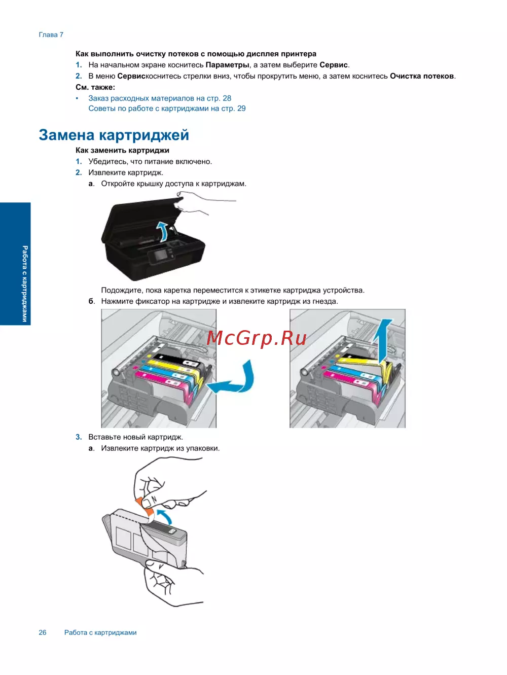 HP Deskjet Ink Advantage 5525 e-All-in-One — инструкция по очистке потеков и замене картриджей принтера [28/62]