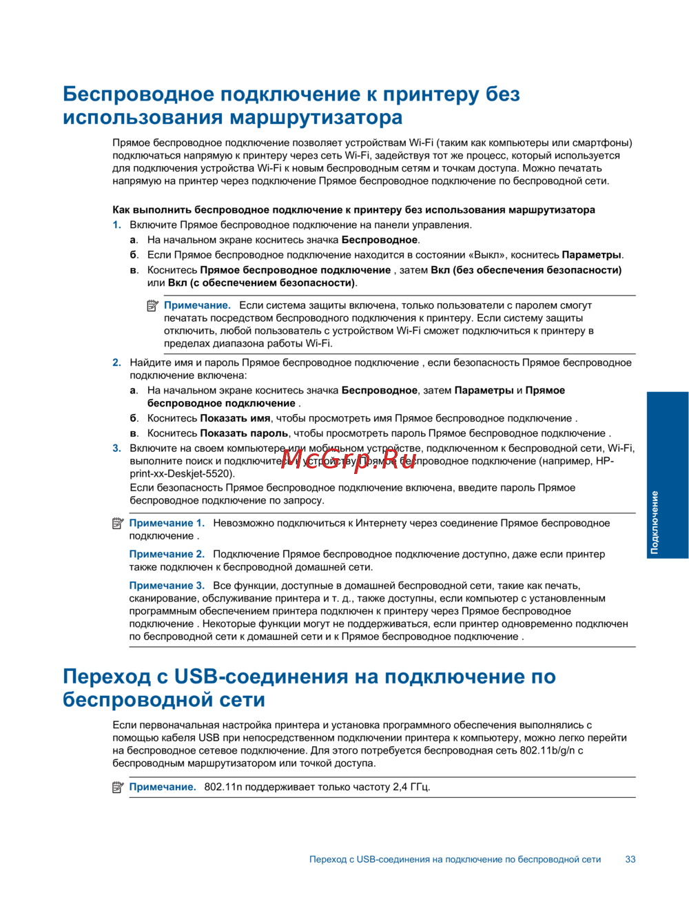Примечание 2. Подключение Прямое беспроводное подключение доступно, даже если принтер