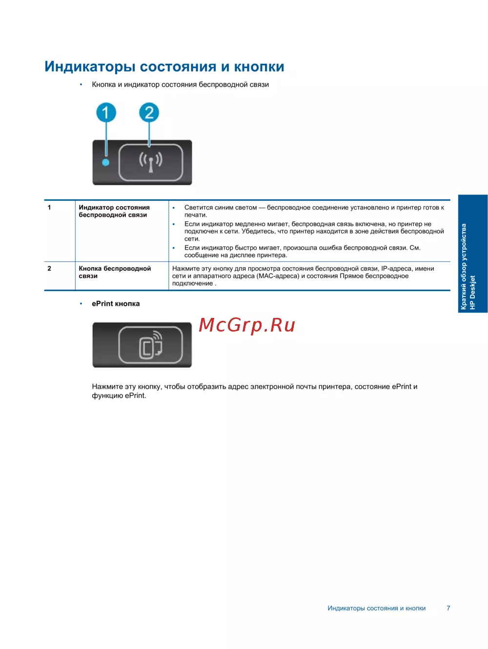 HP Deskjet Ink Advantage 5525 e-All-in-One — индикаторы состояния и кнопки беспроводной связи принтера [9/62]