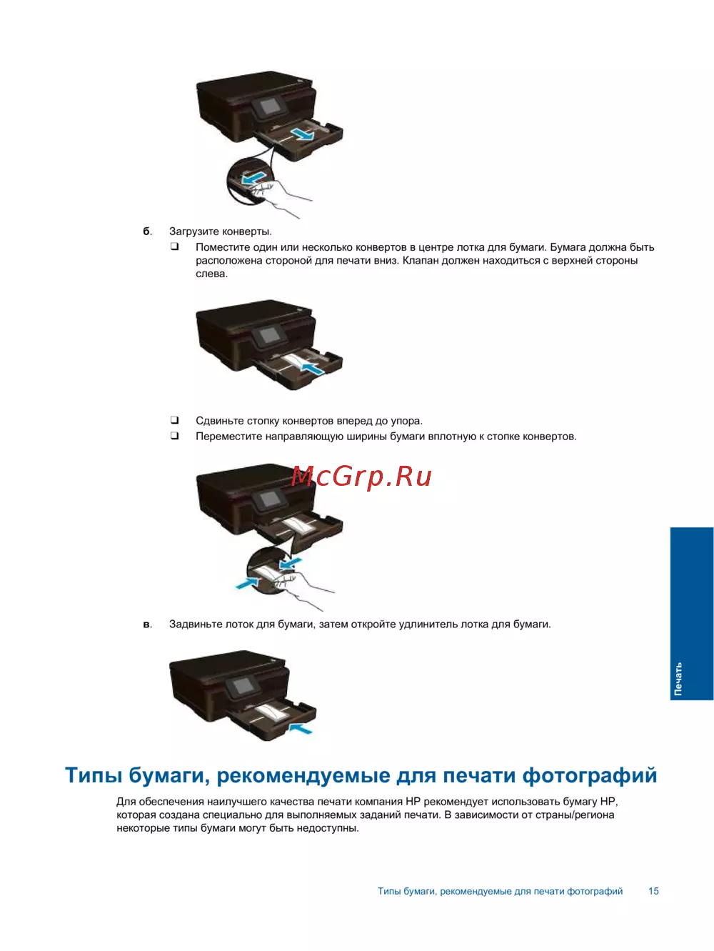 HP Deskjet Ink Advantage 6525 e-All-in-One — как правильно загружать конверты и печатать фотографии [17/66]