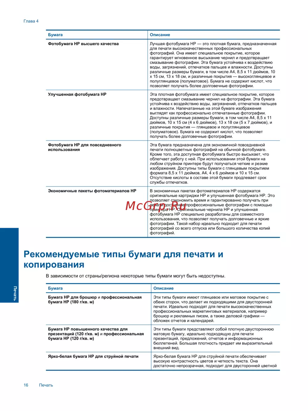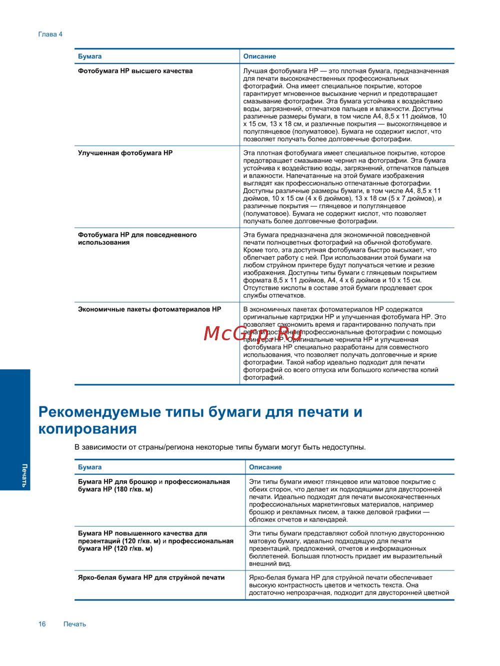 В зависимости от страны/региона некоторые типы бумаги могут быть недоступны.
