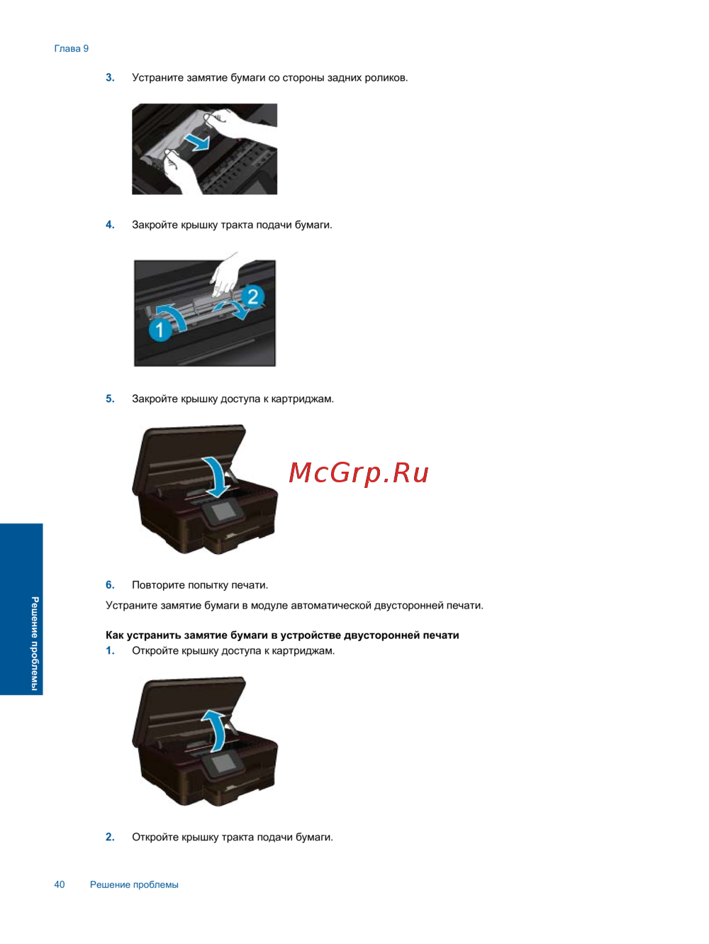 Как устранить замятие бумаги в устройстве двусторонней печати
