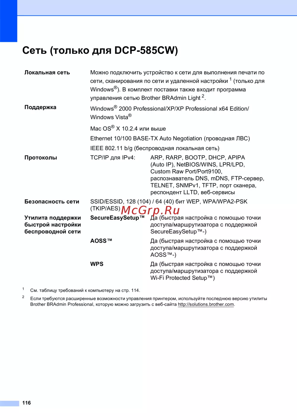 - Сеть только для dcp 585cw p.124