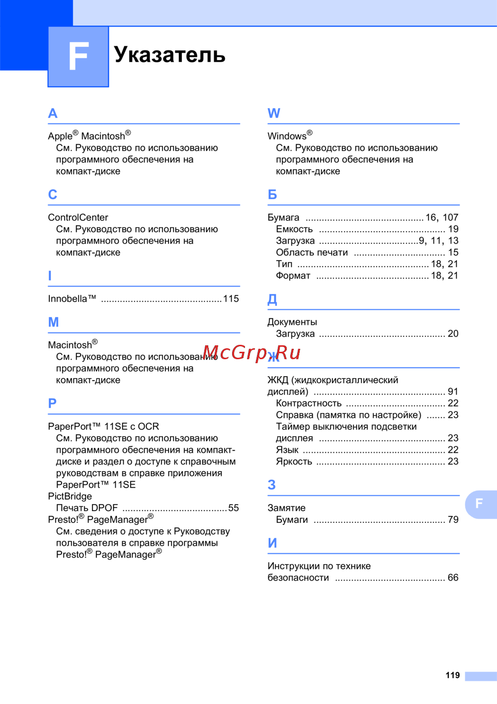 ![Brother DCP-385C [127/131] Указатель](/views2/1051631/page127/bg7f.png)