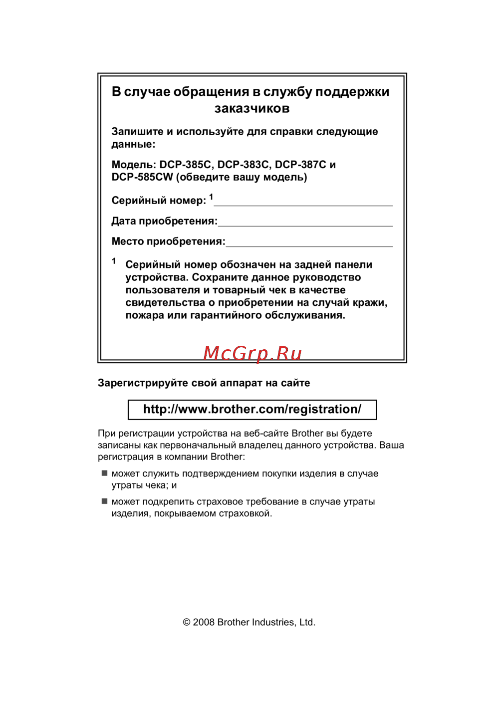 Brother DCP-385C — руководство по регистрации и поддержке устройств [2/131]