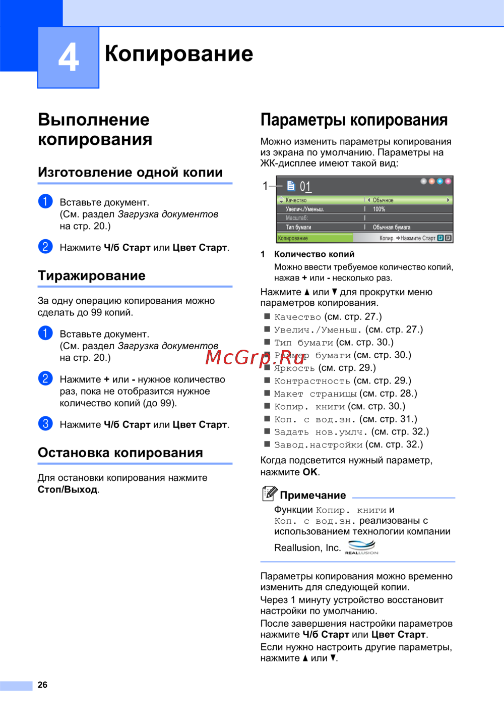 Brother DCP-385C — инструкция по копированию: настройка и выполнение операций [34/131]