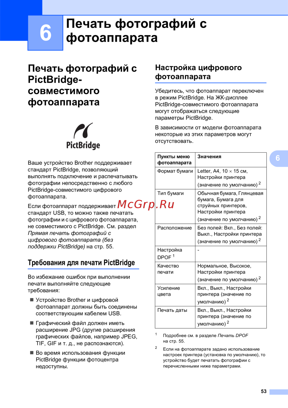 Brother DCP-385C — печать фотографий с PictBridge-совместимого фотоаппарата [61/131]