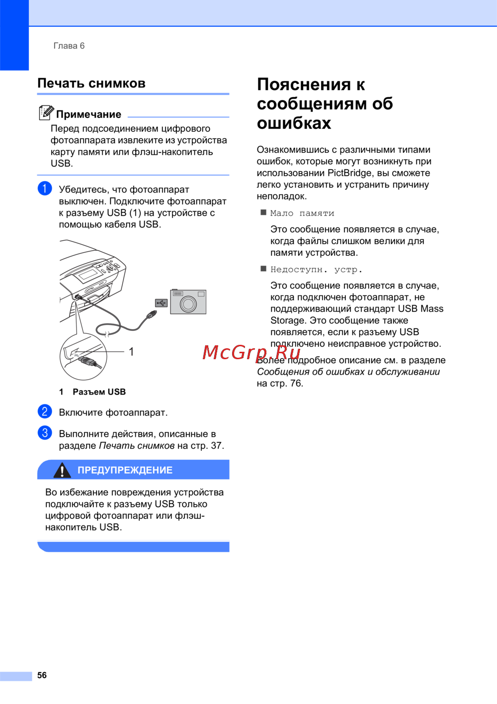 Brother DCP-385C — как подключить цифровой фотоаппарат для печати снимков [64/131]