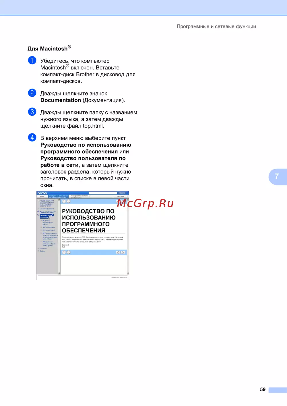 Узнайте, как использовать программные и сетевые функции на компьютерах Macintosh. Пошаговое руководство по доступу к документации и руководствам.