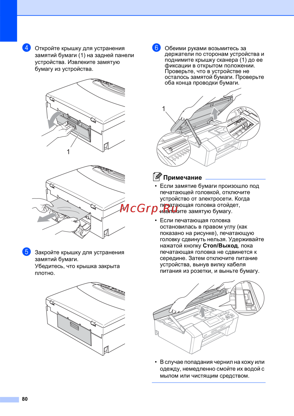 Brother DCP-385C — как устранить замятия бумаги в устройстве: пошаговая инструкция [88/131]