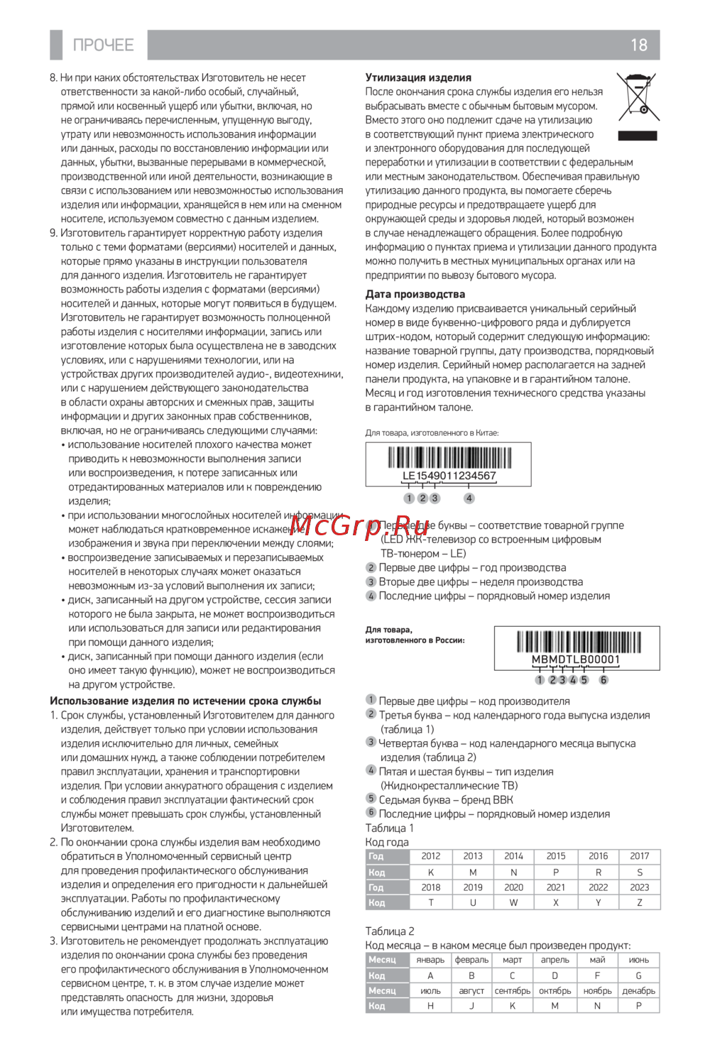 BBK LED1952DTG — условия эксплуатации и утилизации изделий: важная информация [20/24]