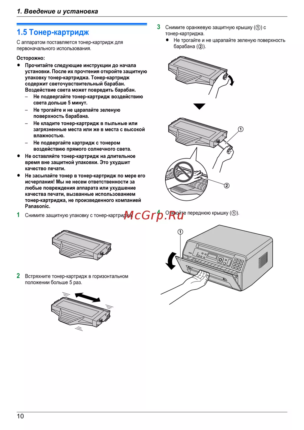 Panasonic KX-MB1500RUD — инструкция по установке тонер-картриджа для печатающих устройств [10/84]