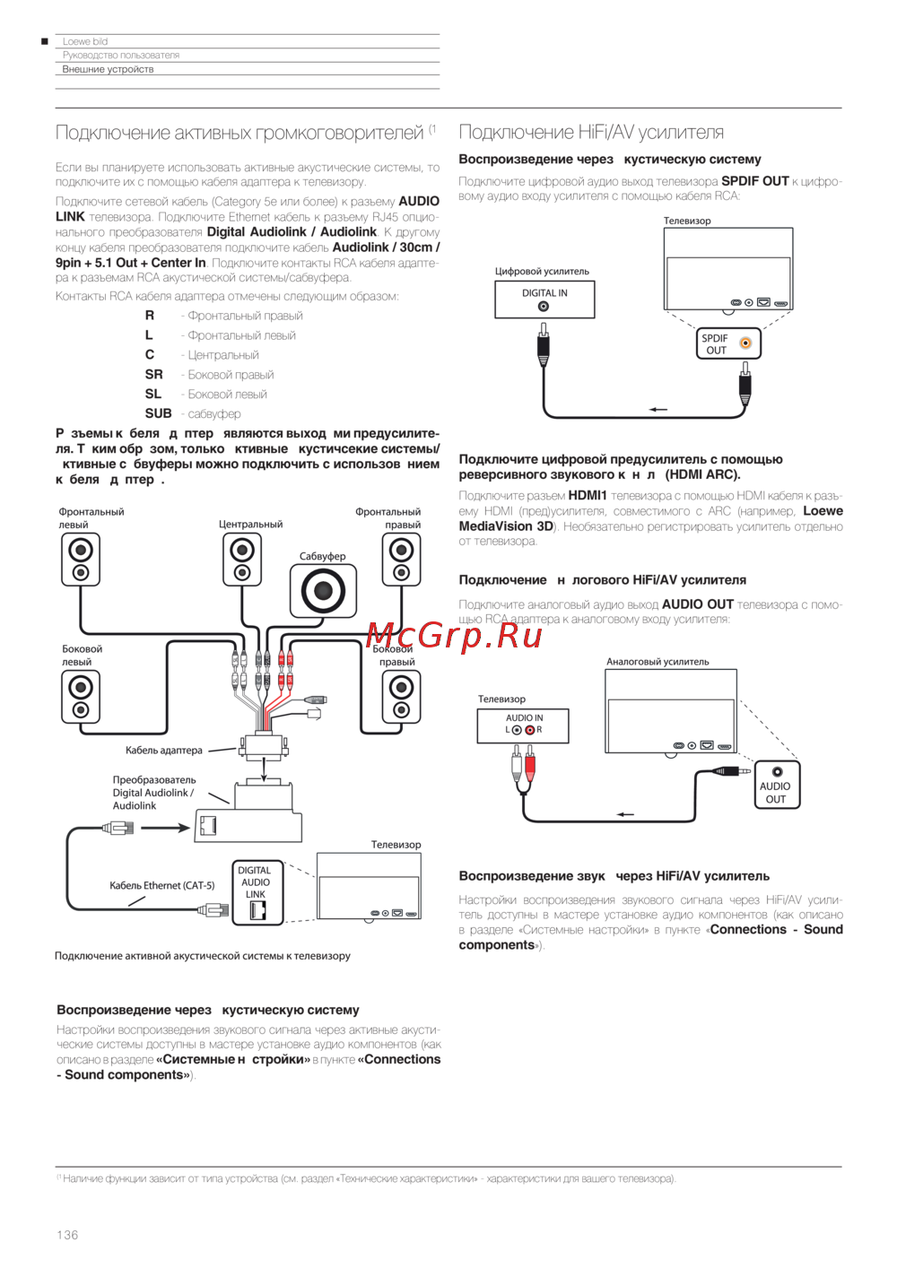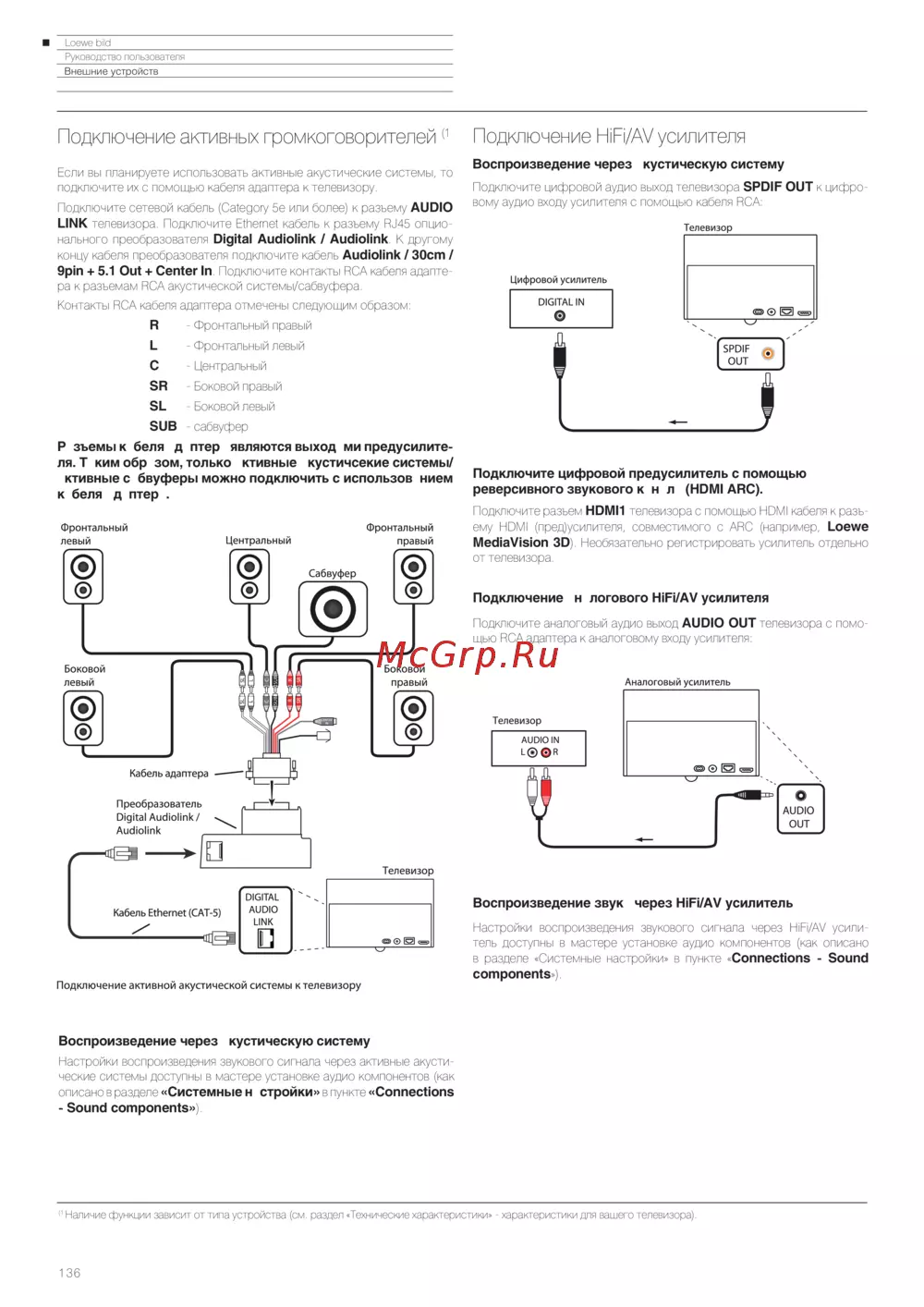 Loewe Bild 3.43 Graphite Grey (57420D81) — подключение активных громкоговорителей и усилителей к телевизору [136/204]