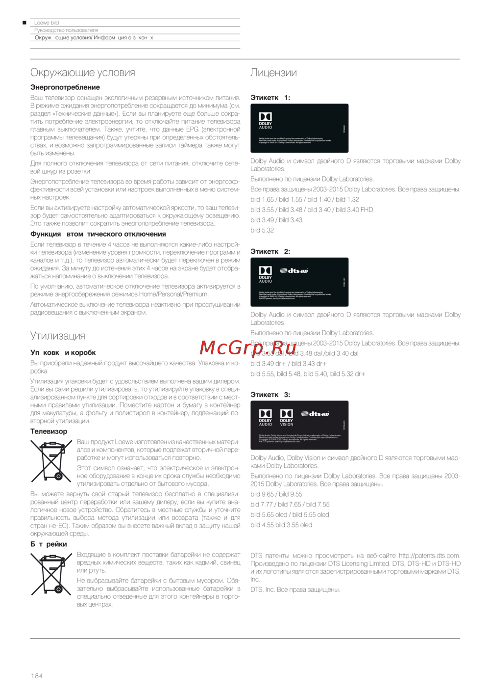 Loewe Bild 3.43 Graphite Grey (57420D81) — энергопотребление и утилизация телевизоров: руководство пользователя [184/204]