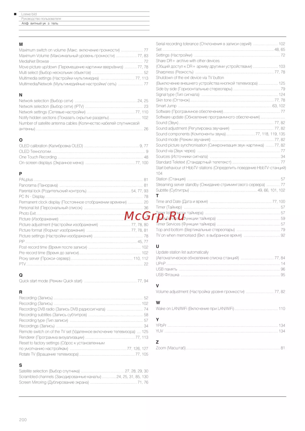 Remote switch on of the TV set (Удаленное включение телевизора) .... 125