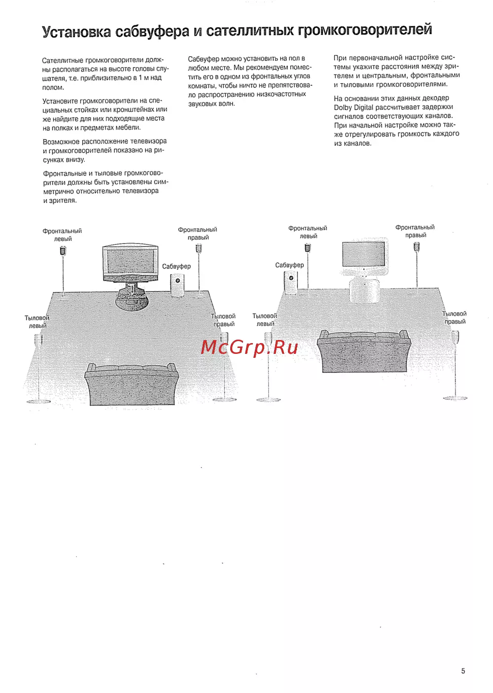 - Установка сабвуфера и сателлитных громкоговорителем p.5