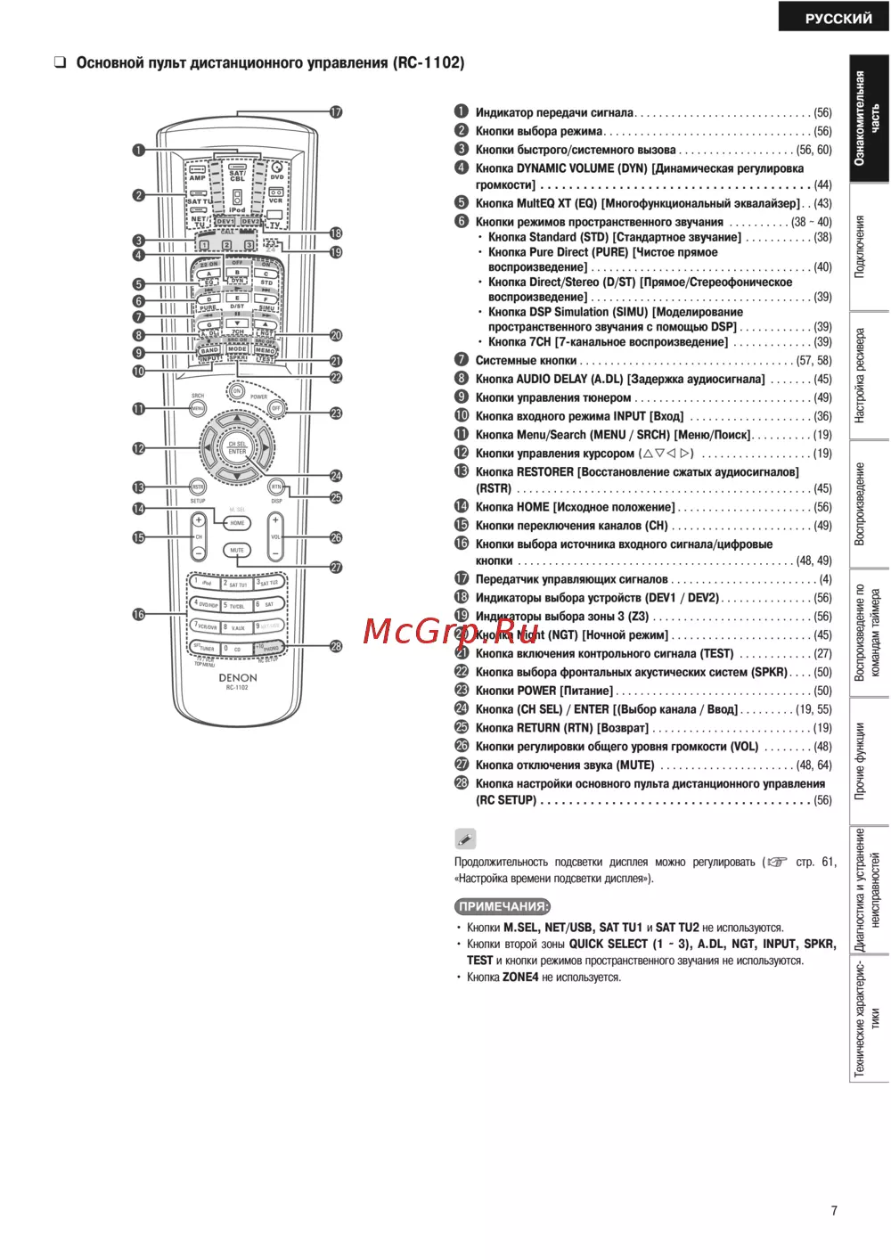 - Основной пульт дистанционного управления rc 1102 p.79