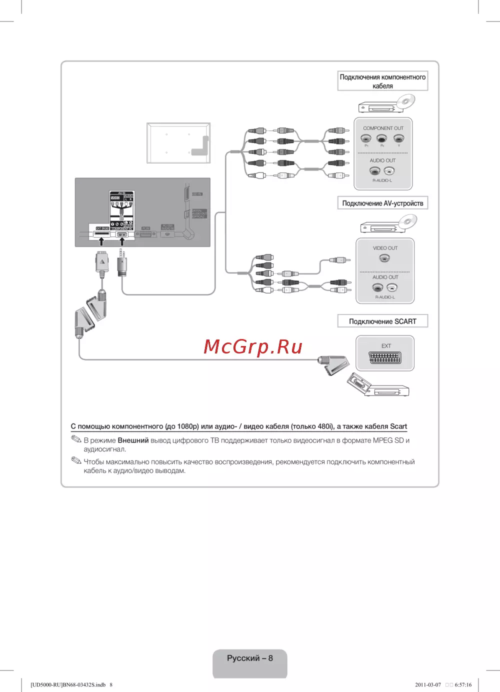 Чтобы максимально повысить качество воспроизведения, рекомендуется подключить компонентный