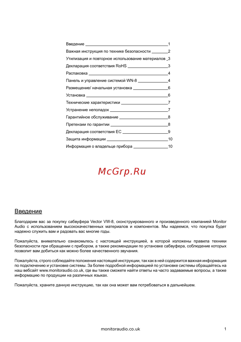 Monitor Audio Vector 5.1 Black — инструкция по установке и эксплуатации сабвуфера [2/22]