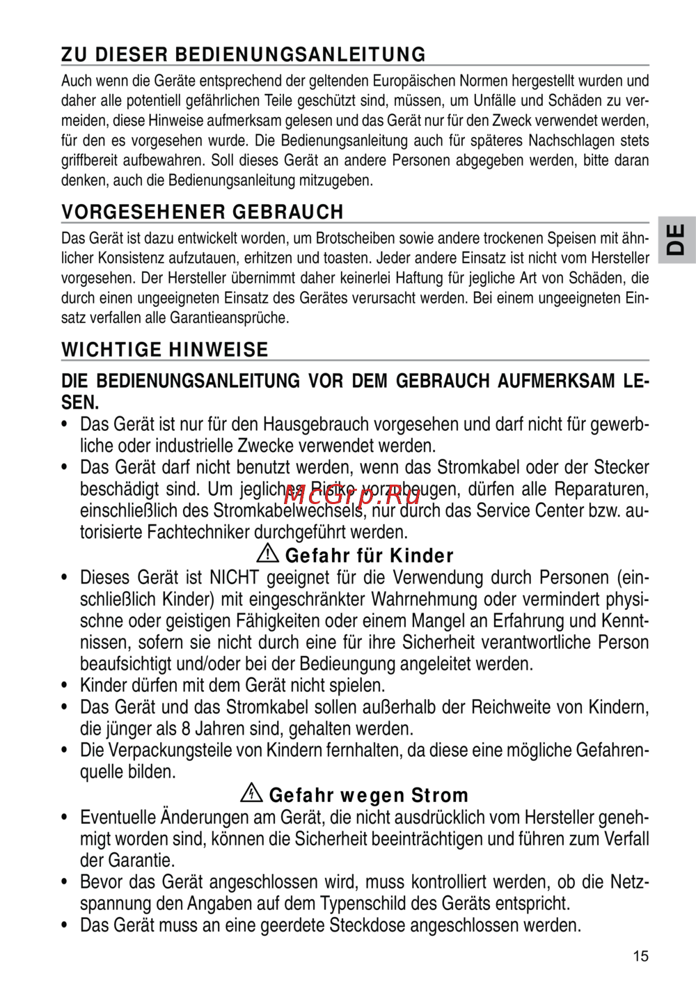 • Das Gerät ist nur für den Hausgebrauch vorgesehen und darf nicht für gewerb-