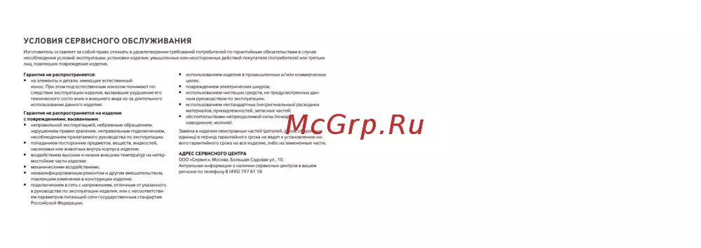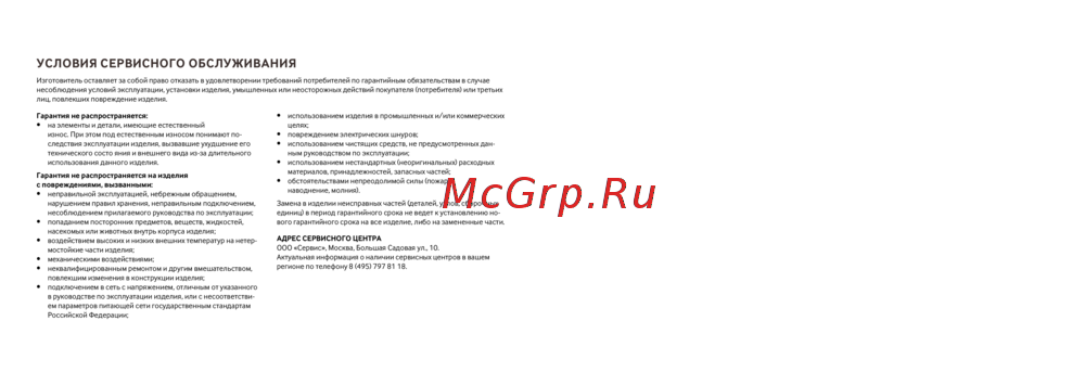 - Условия сервисного обслуживания p.10