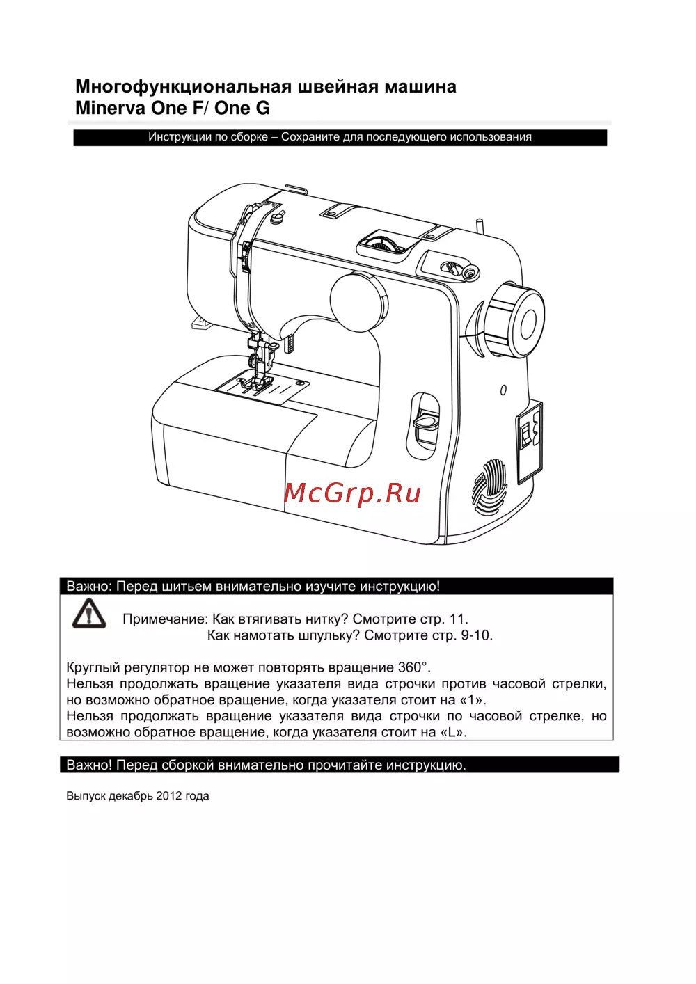 Minerva One G — инструкция по шитью и сборке многофункциональной машины [1/34]