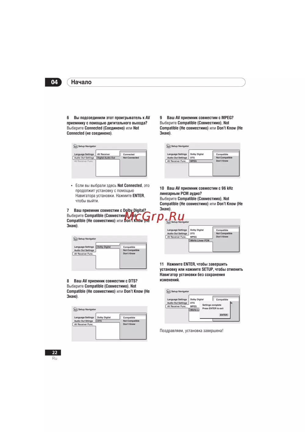 - Переключение аудио каналов при проигрывании видео cd p.35