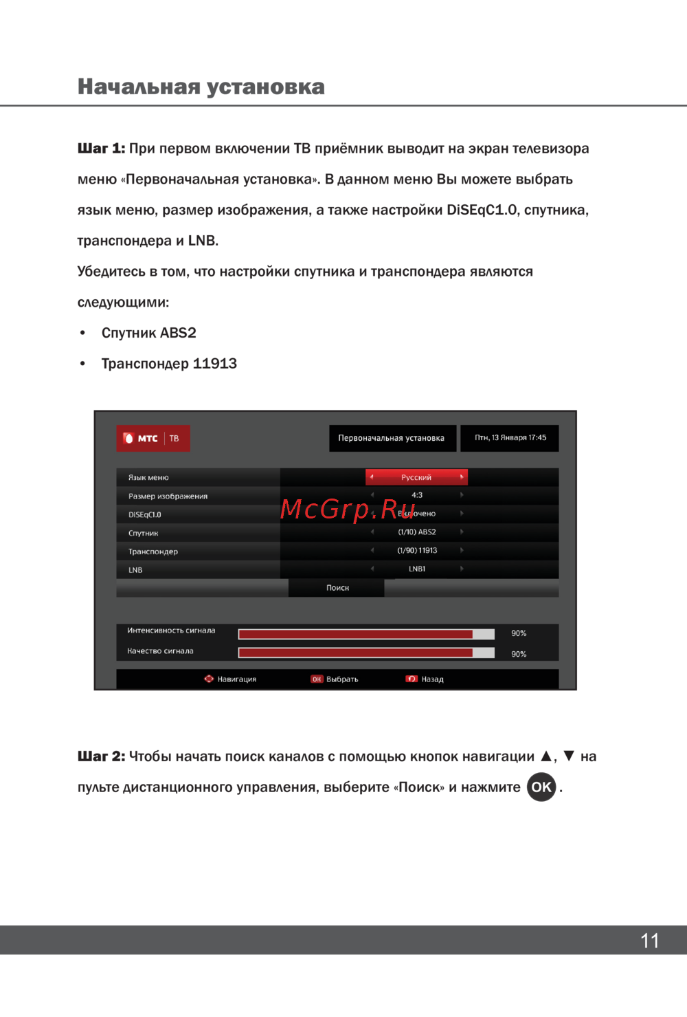 Шаг 1: ПрипервомвключенииТВприёмниквыводитнаэкрантелевизора