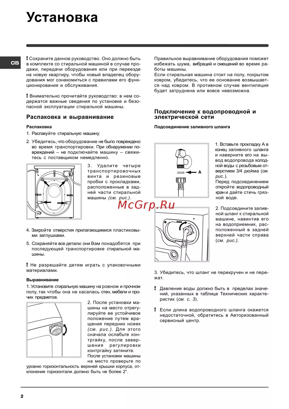 Indesit WISL 102 — руководство по установке стиральной машины: советы и рекомендации [2/12]