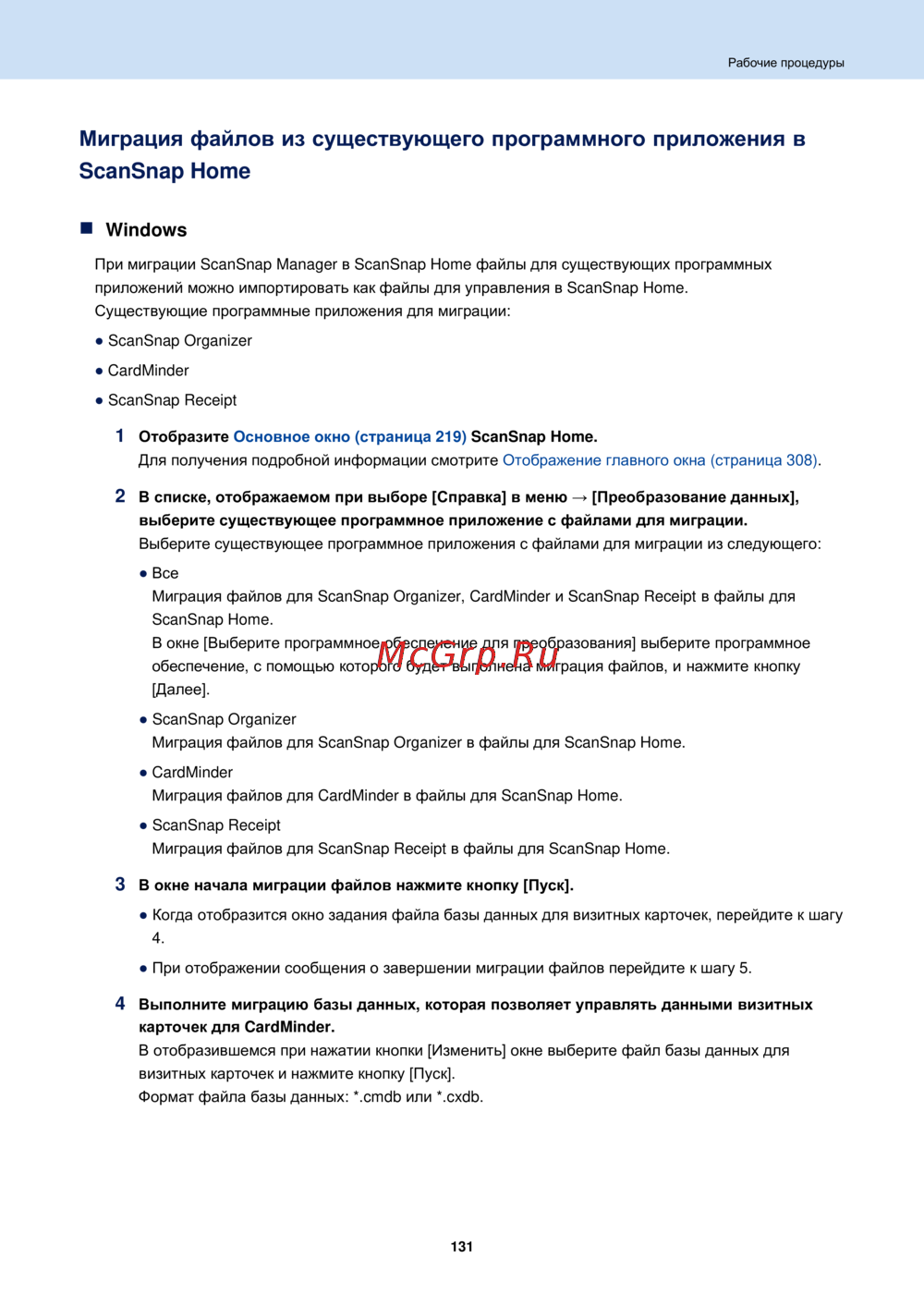 Миграция файлов для ScanSnap Organizer, CardMinder и ScanSnap Receipt в файлы для