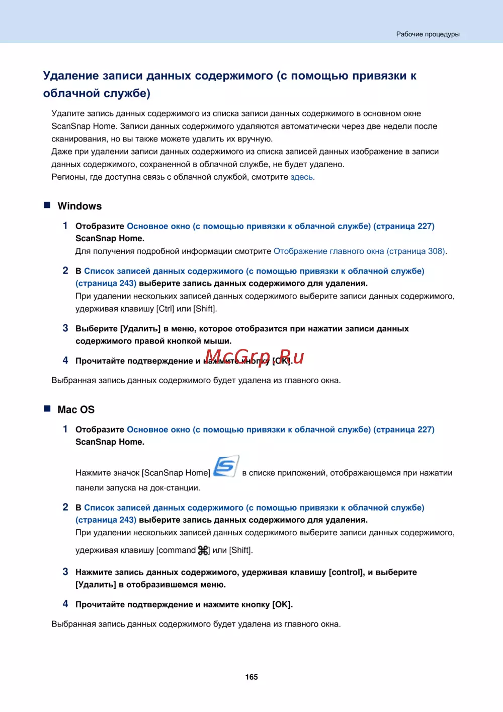 Fujitsu ScanSnap iX1500 [165/638] Удаление записи данных содержимого с помощью привязки к облачной службе