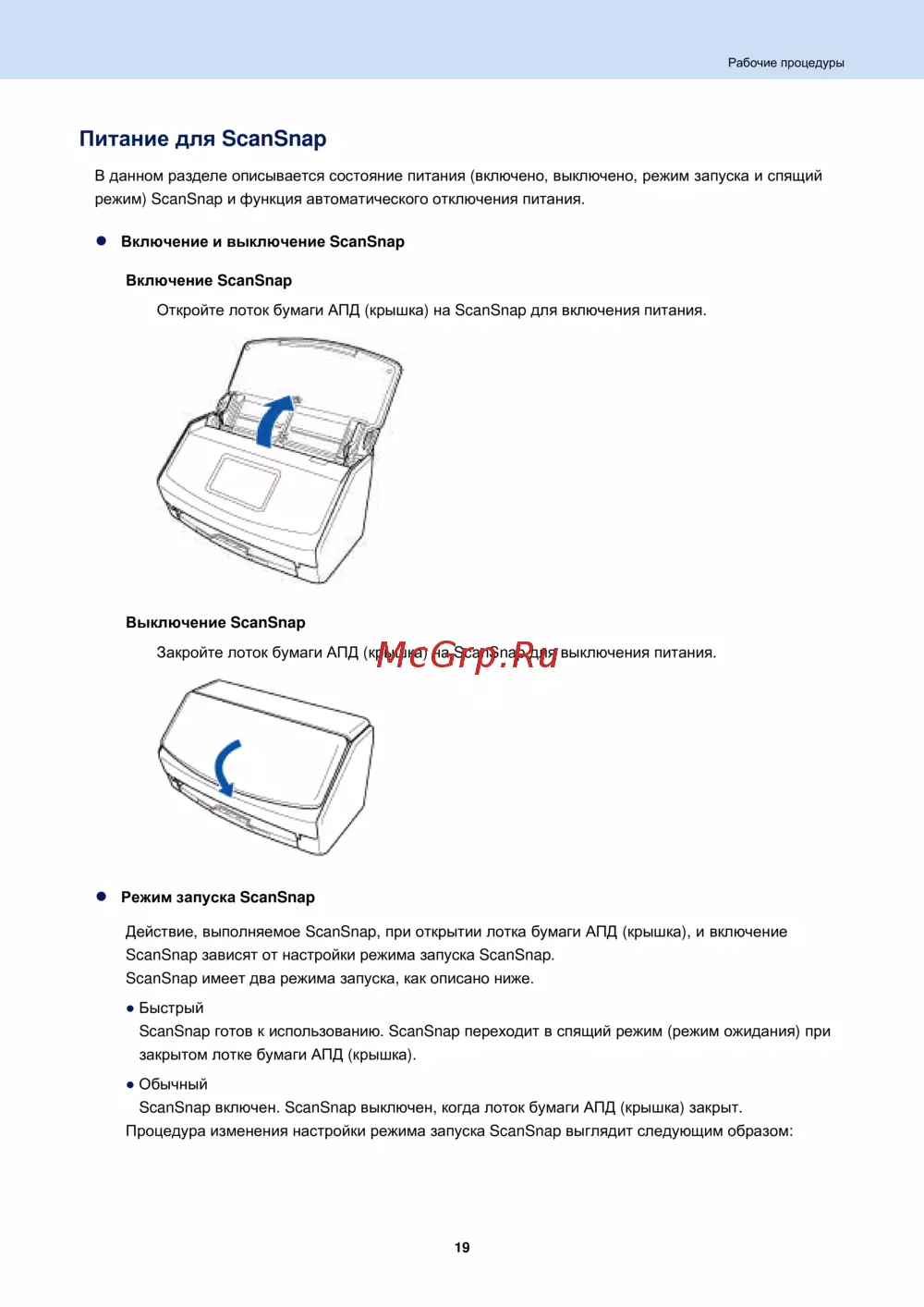 ScanSnap зависят от настройки режима запуска ScanSnap.