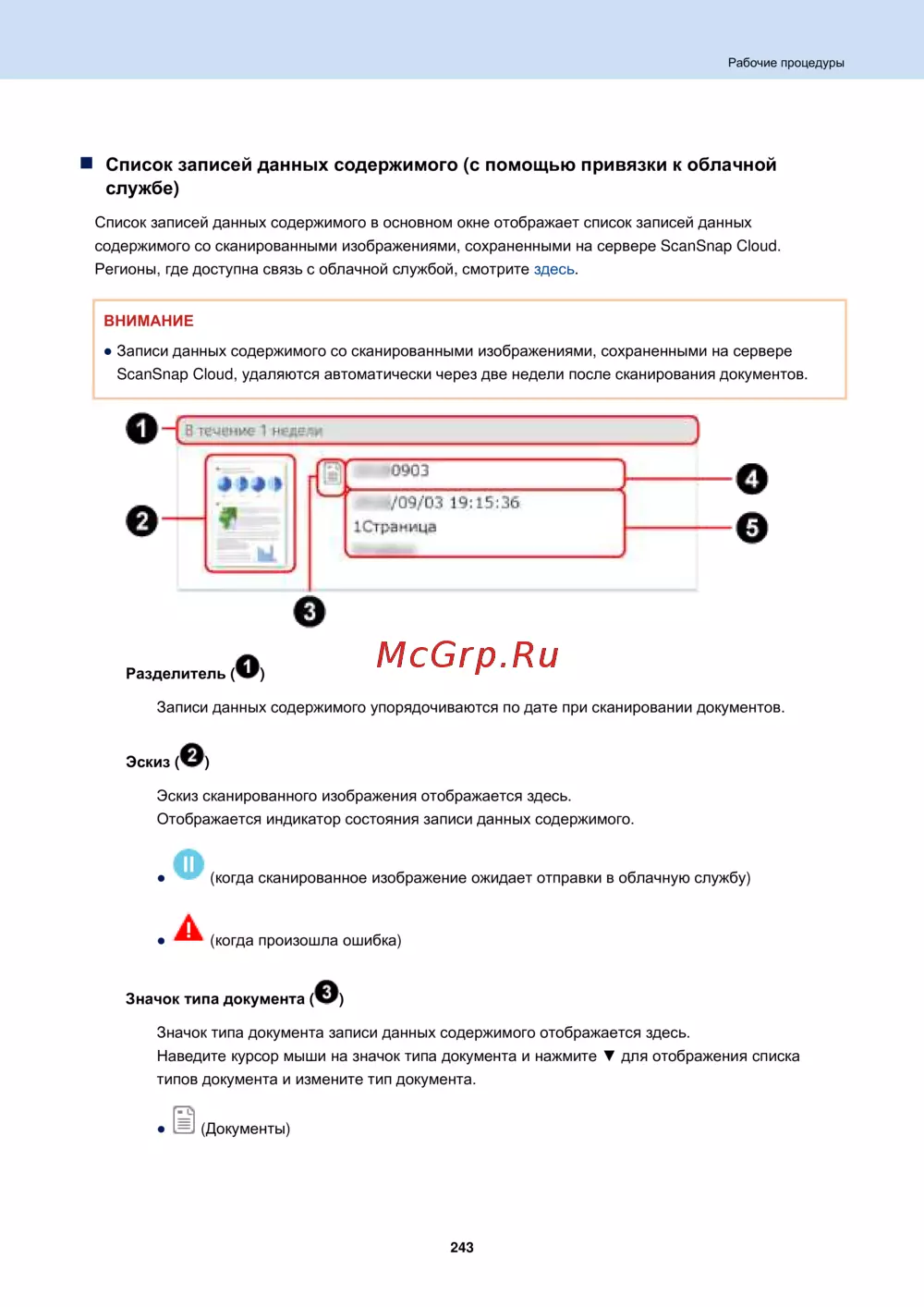 Fujitsu ScanSnap iX1500 [243/638] Список записей данных содержимого с помощью привязки к облачной