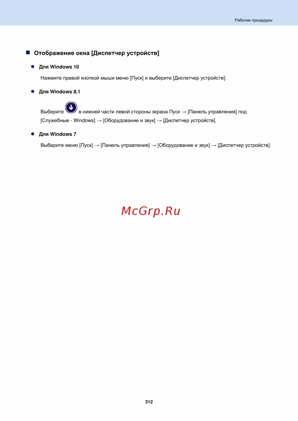 Выберите меню [Пуск] → [Панель управления] → [Оборудование и звук] → [Диспетчер устройств].