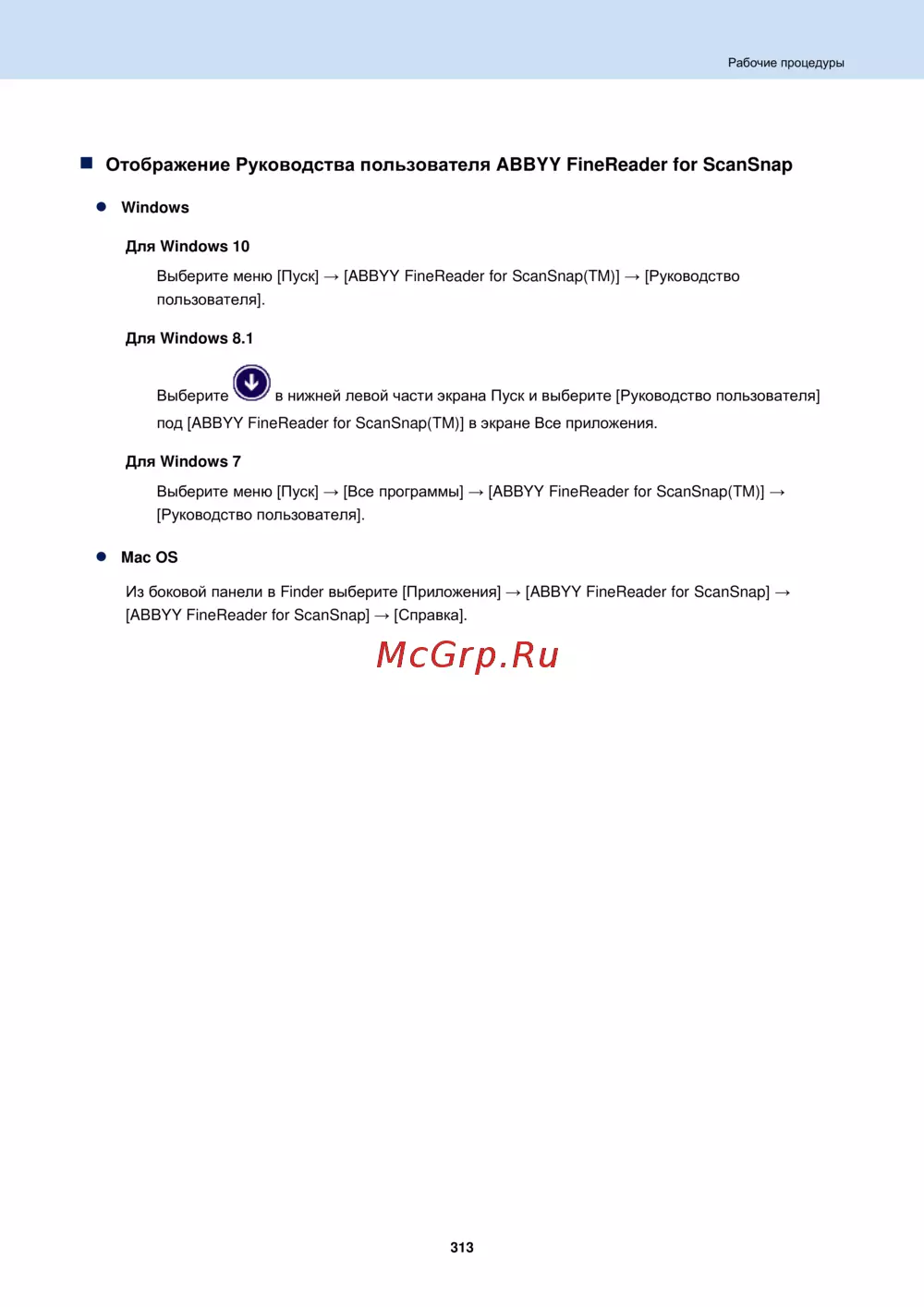 Выберите меню [Пуск] → [ABBYY FineReader for ScanSnap(TM)] → [Руководство