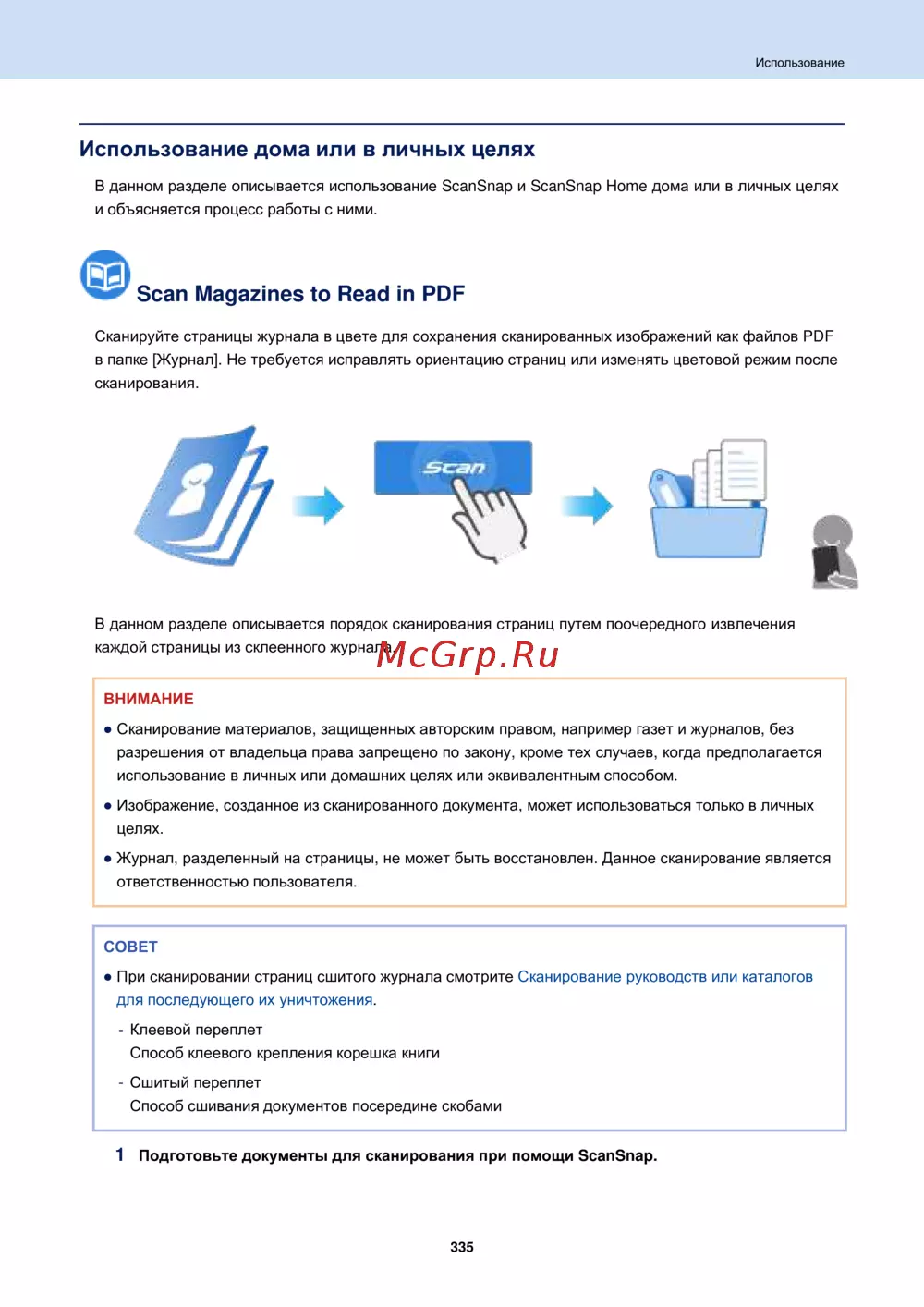 ● Сканирование материалов, защищенных авторским правом, например газет и журналов, без