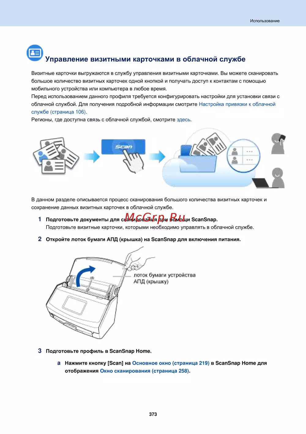Fujitsu ScanSnap iX1500 — управление визитными карточками в облачной службе: пошаговое руководство [373/638]