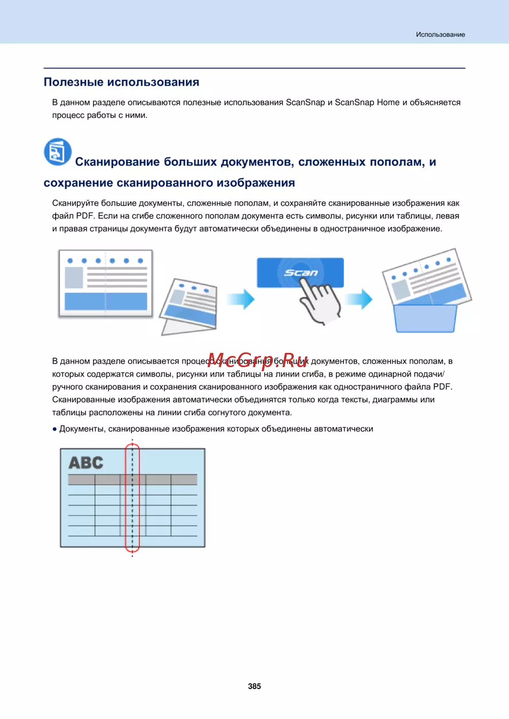 Сканируйте большие документы, сложенные пополам, и сохраняйте сканированные изображения как