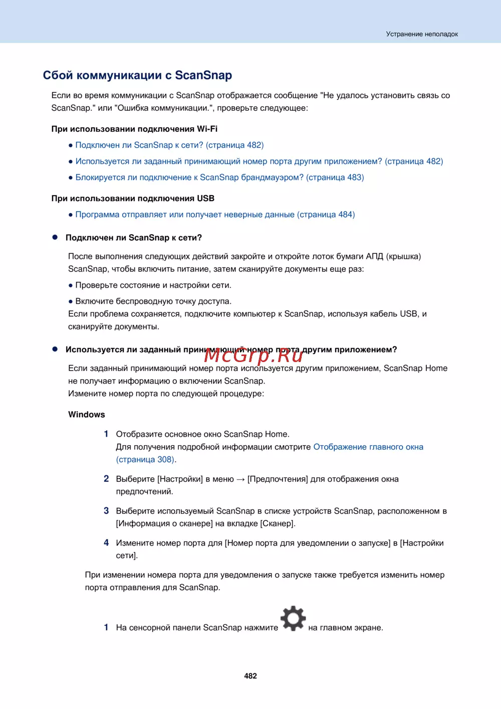 ● Блокируется ли подключение к ScanSnap брандмауэром? (страница 483)