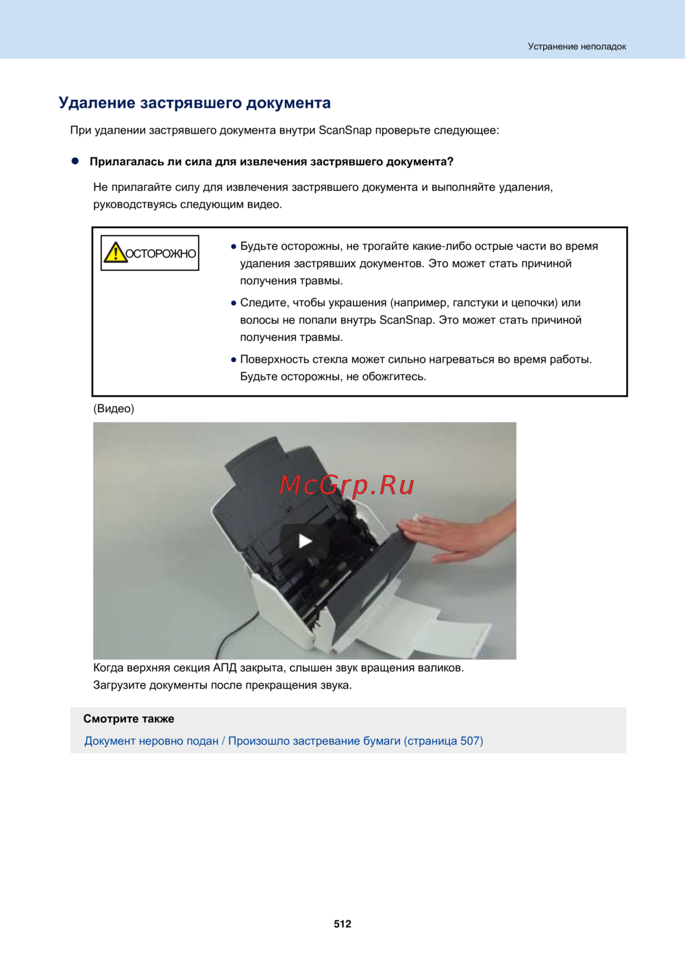 Документ неровно подан / Произошло застревание бумаги (страница 507)