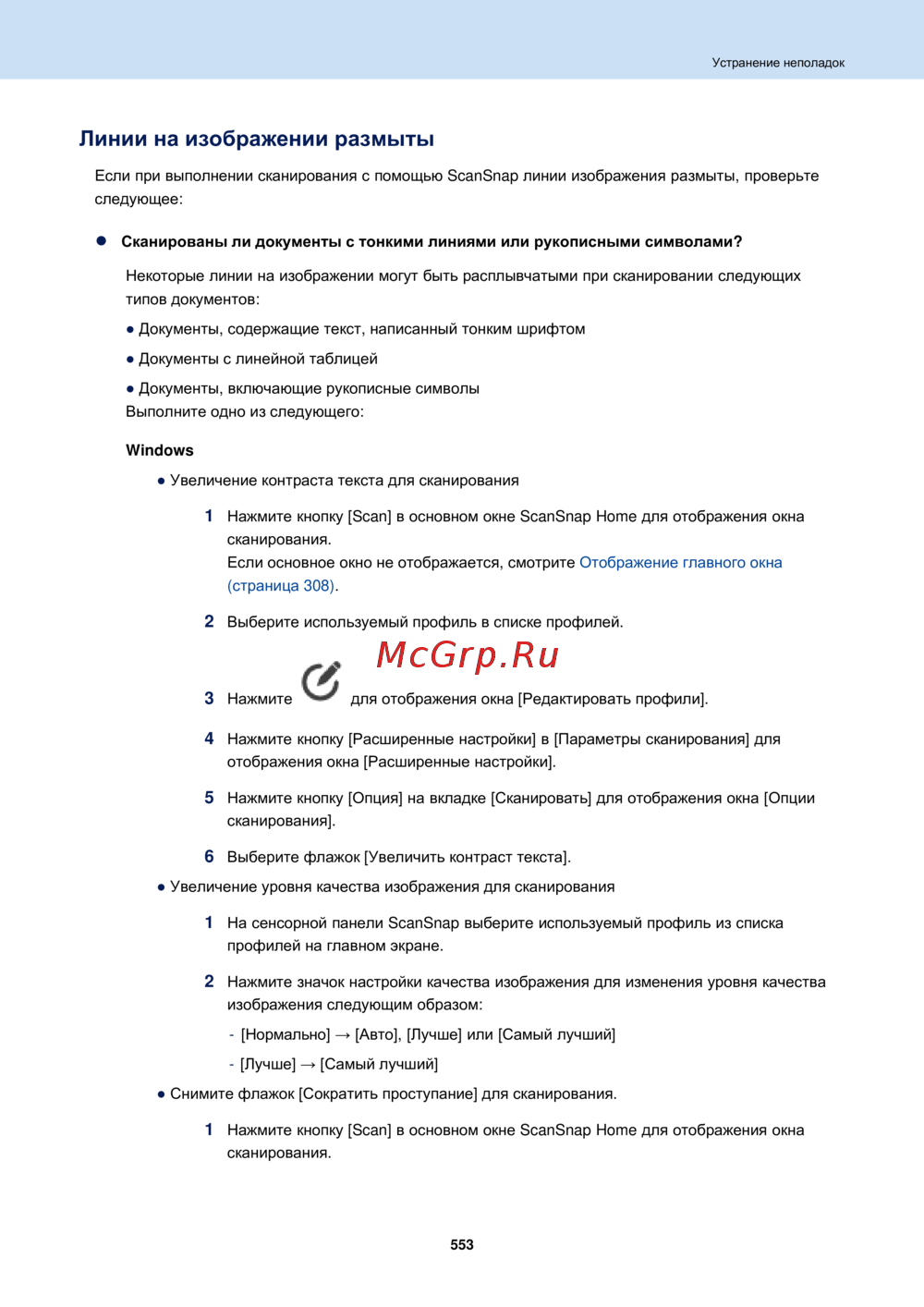 - Сканированное изображение перекошено или искажено p.539