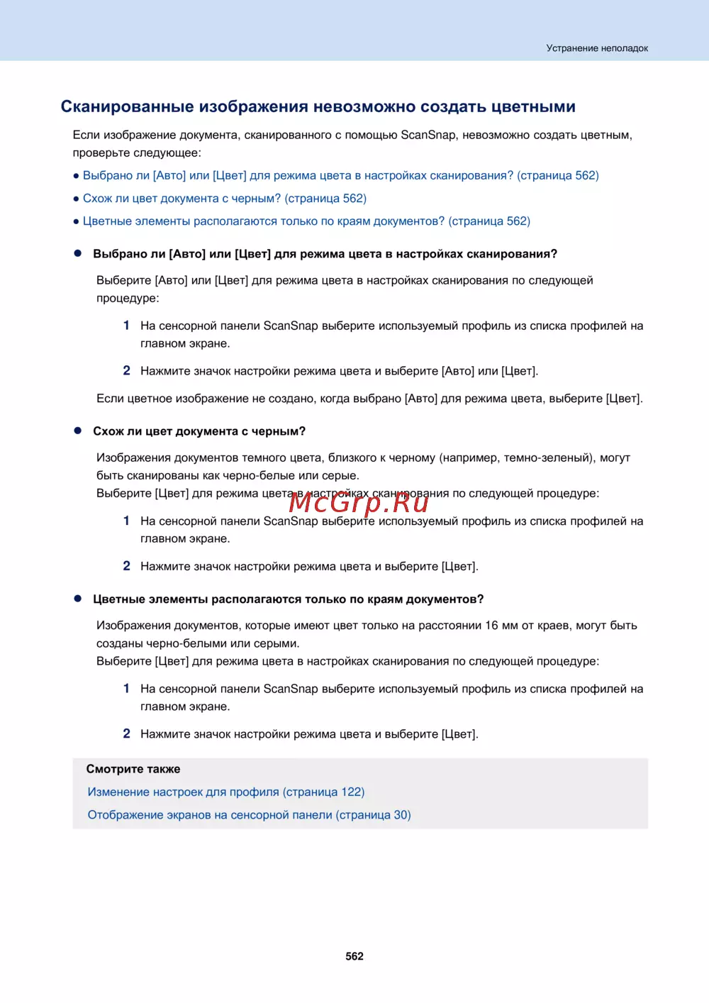 - Цвет сканированного изображения отличается от цвета исходного документа p.556