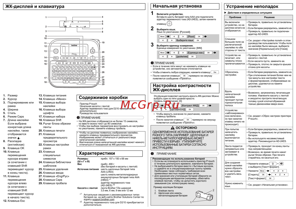 Brother PT-D210VP — инструкция по использованию принтера с ЖК-дисплеем и клавиатурой [2/7]