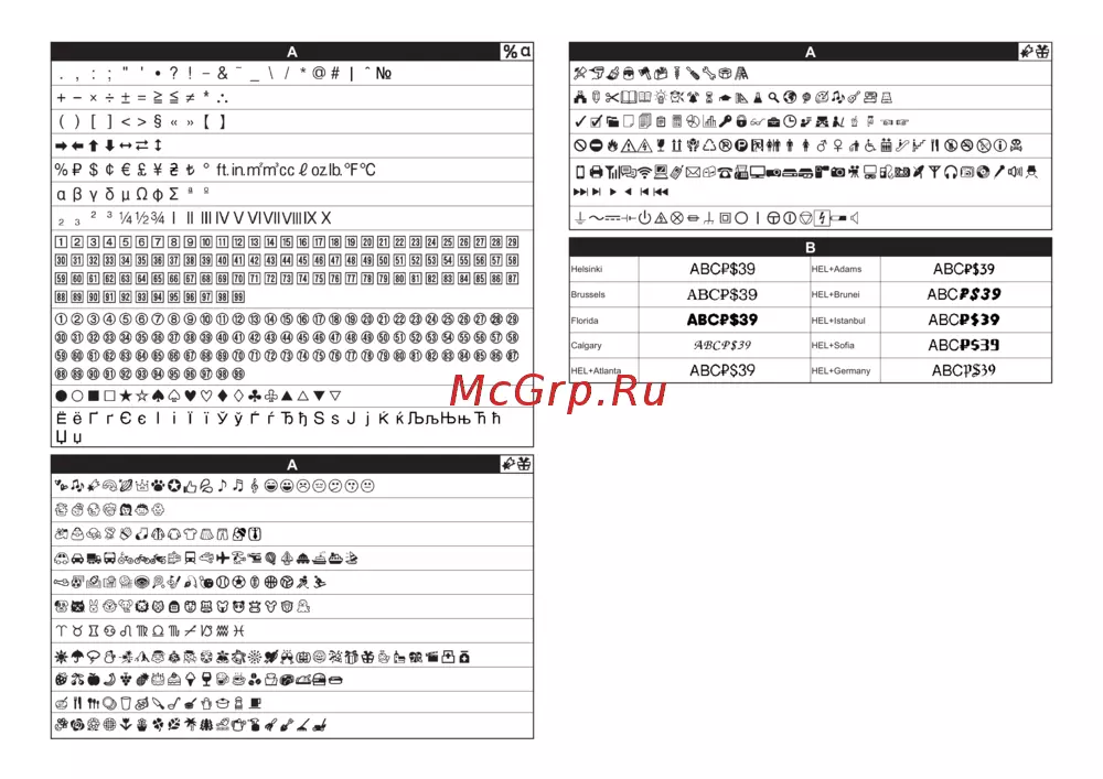 - Клавиша выбора шрифта p.4