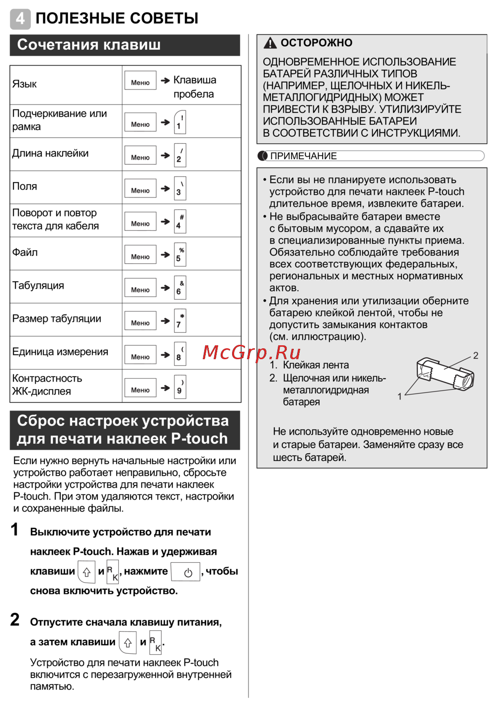 - Сброс настроек устройства для печати наклеек p touch p.14