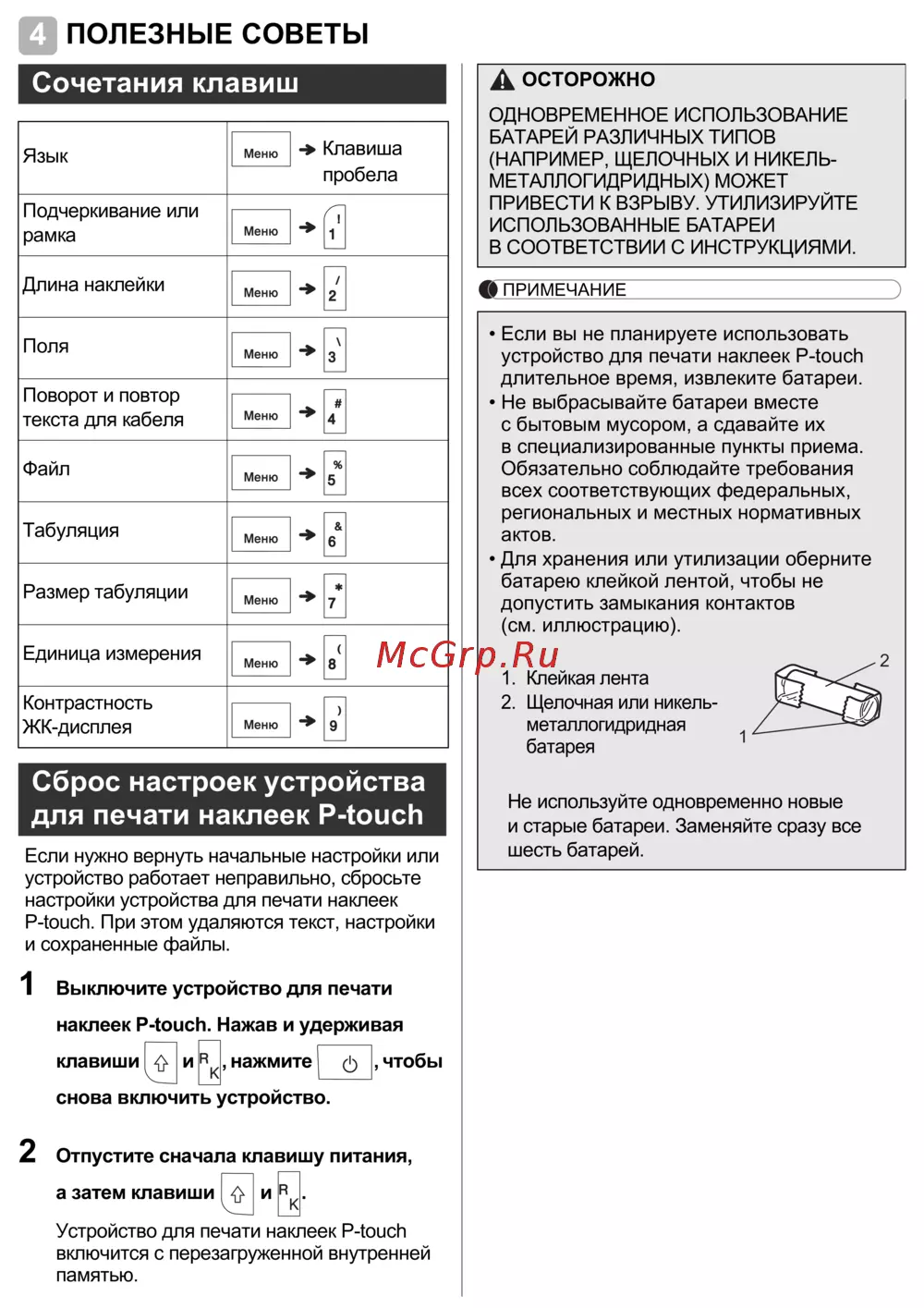 • Не выбрасывайте батареи вместе