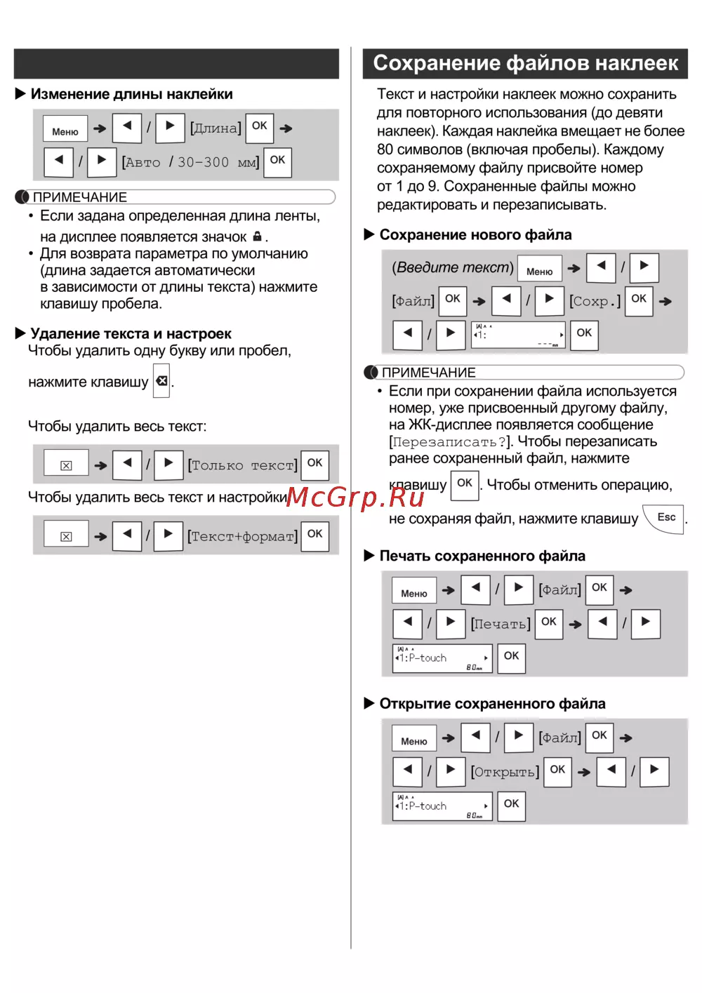 - Длина наклейки отображаемая на жк дисплее может немного отличаться от реальной длины напечатанной наклейки p.4