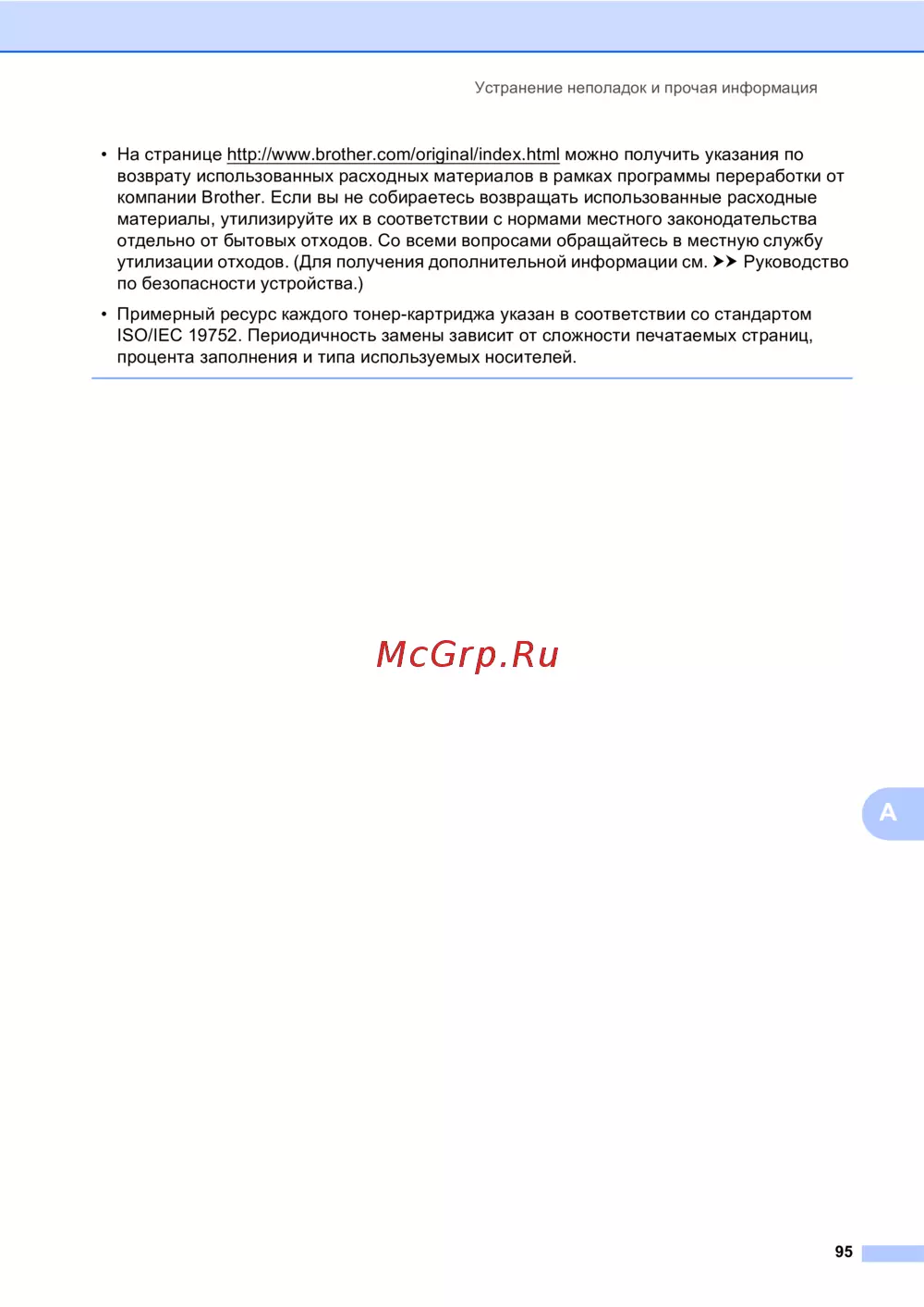 компании Brother. Если вы не собираетесь возвращать использованные расходные